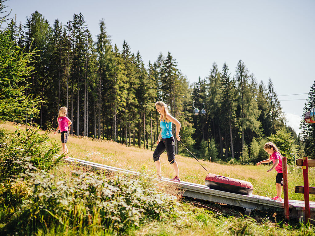 Sommerliches Rutschvergnügen auf luftgepolsterten Reifen ist ein unvergessliches Abenteuer für Klein und Groß. Auf der Gerlitzen Alpe müsst ihr auch im Sommer nicht auf das gewisse Winterfeeling verzichten. Unsere Sommer Tubes bewegen sich auf einem speziellen Rutschteppich, der die Gleiteigenschaften von Schnee simuliert. Die Seitenführungen erlauben dabei ungetrübten Spaß bei maximaler Sicherheit. Bergauf geht es ganz gemütlich mit dem Zauberteppich. Auf die Plätze, fertig, los!